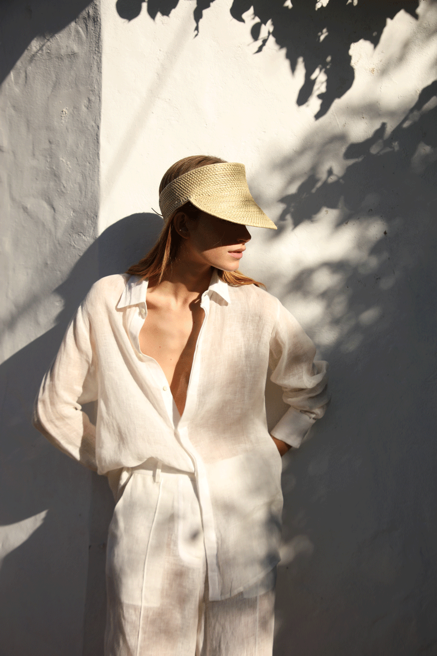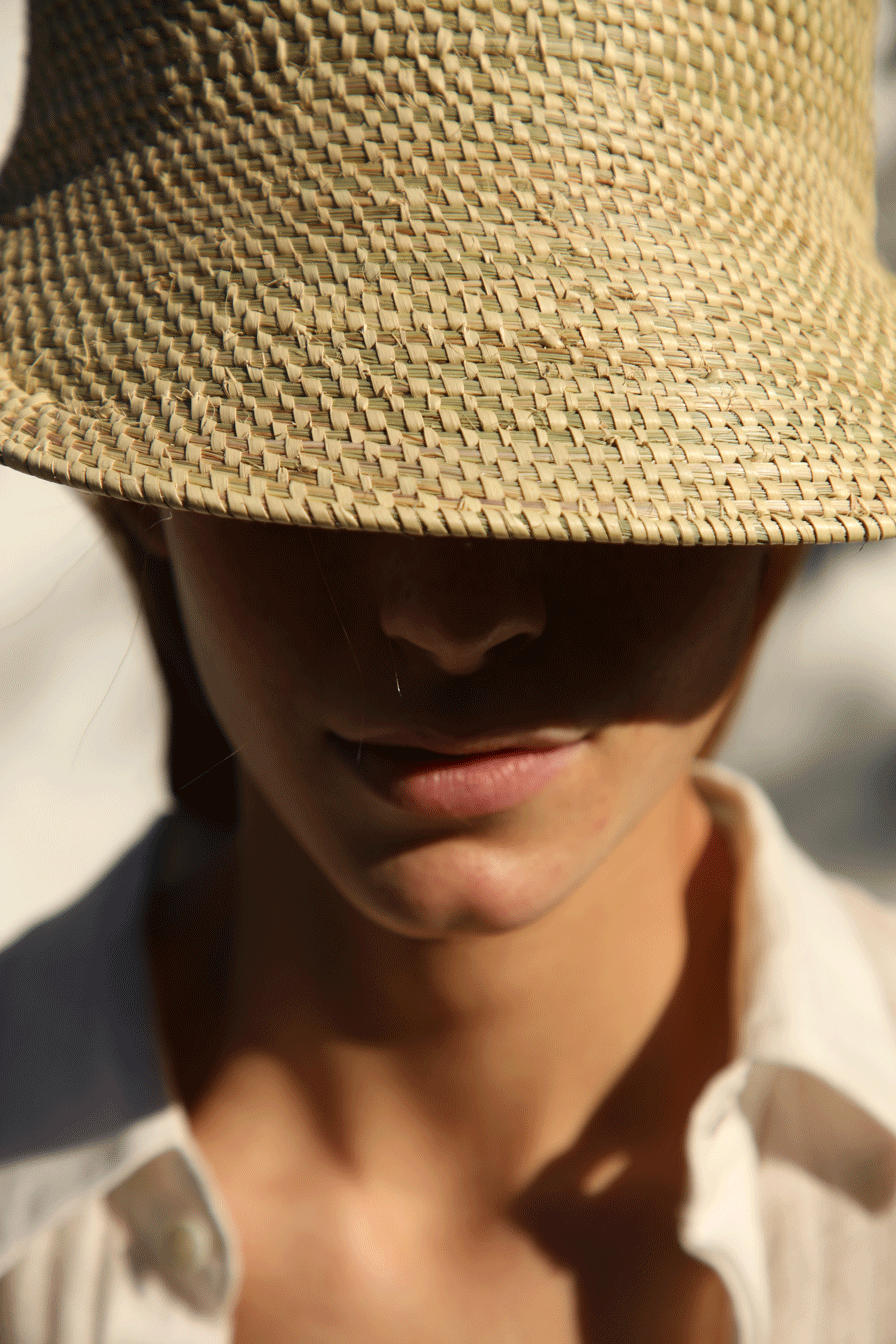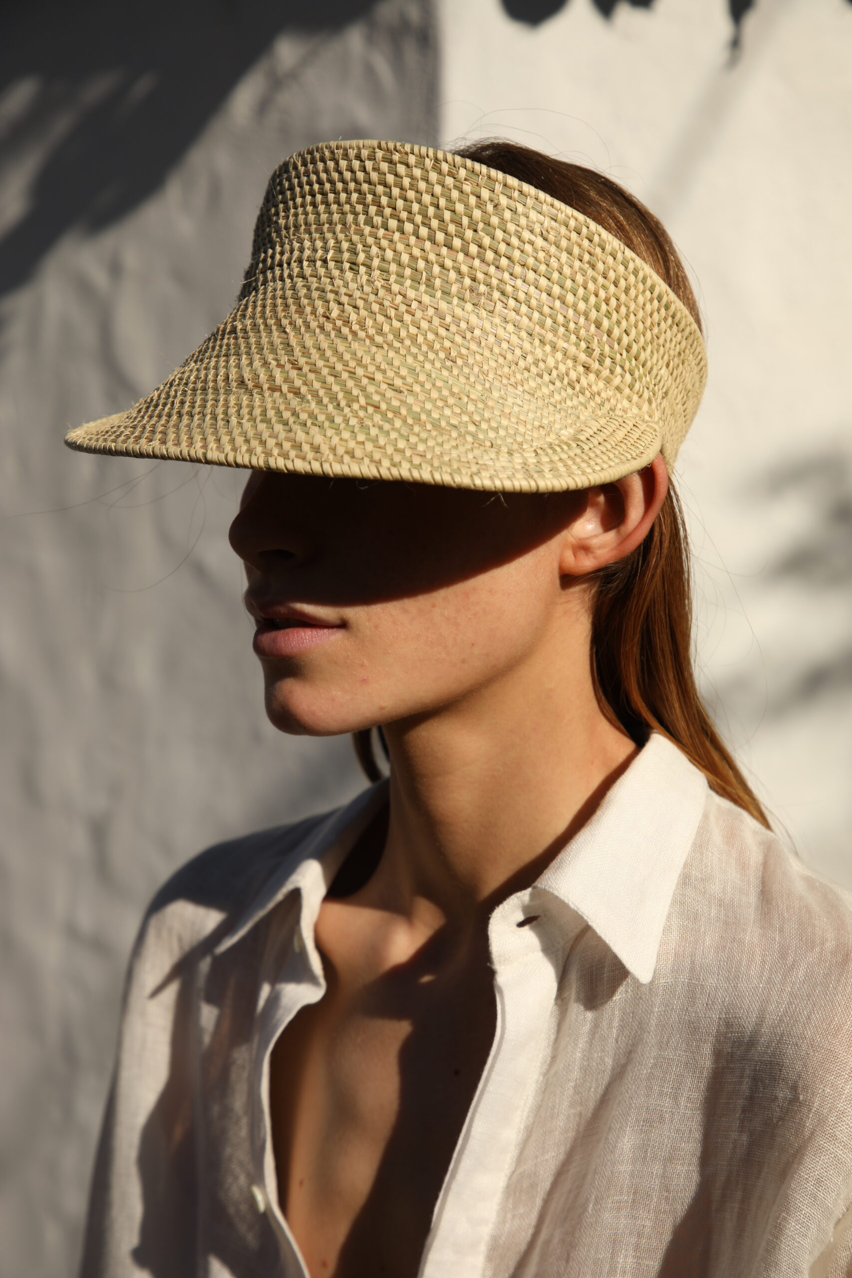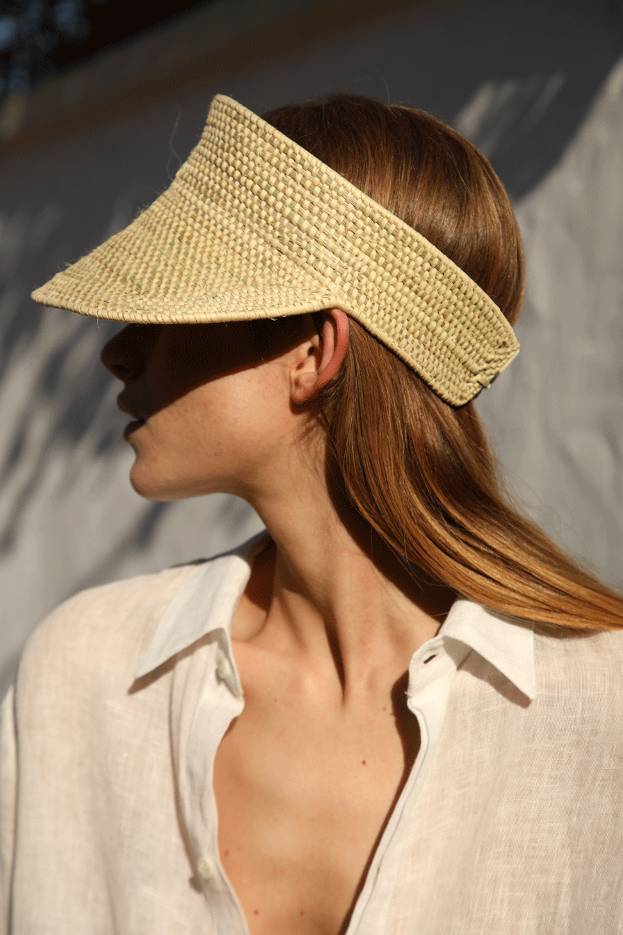 The Aguas Visor hand-knitted in espartillo fiber by artisans from Esteros del Iberá