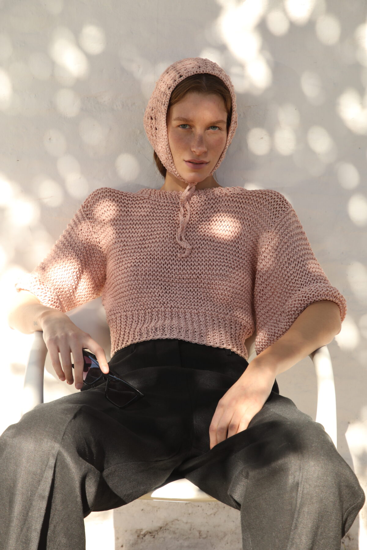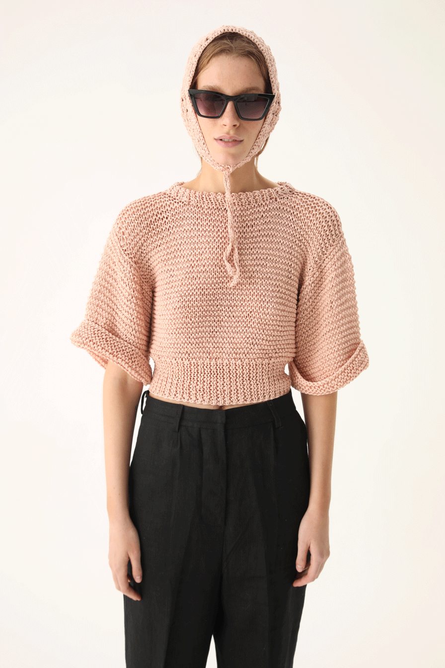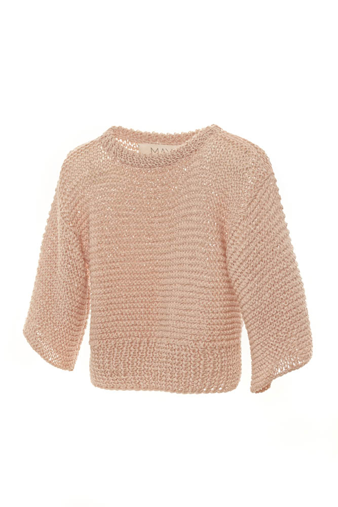 Garter stitch hand-knitted 3/4 sleeves Sweater