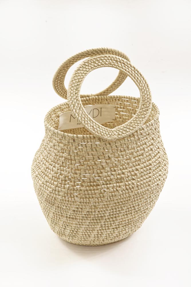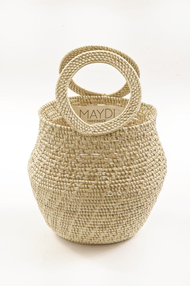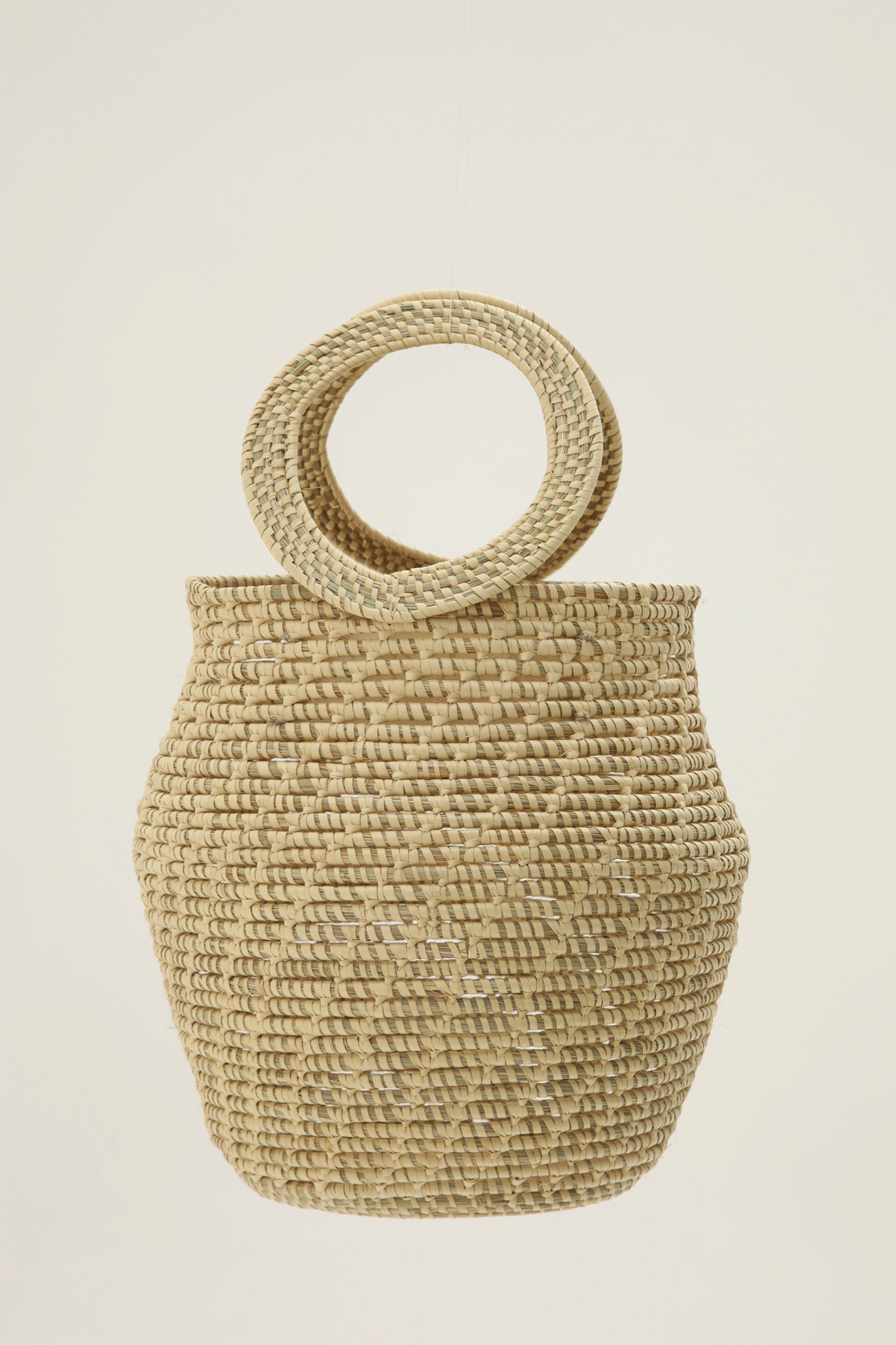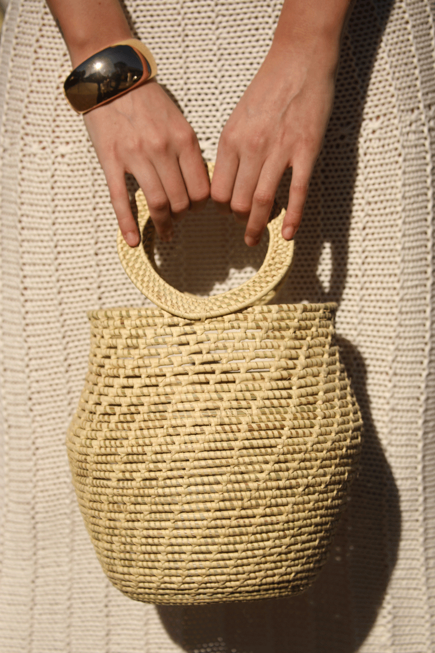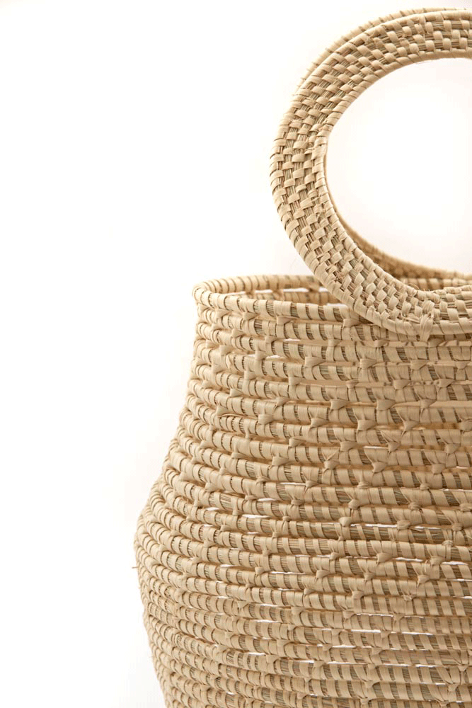 The Guarani Basket circular handles hand-knitted in espartillo fiber by artisans from Esteros del Iberá