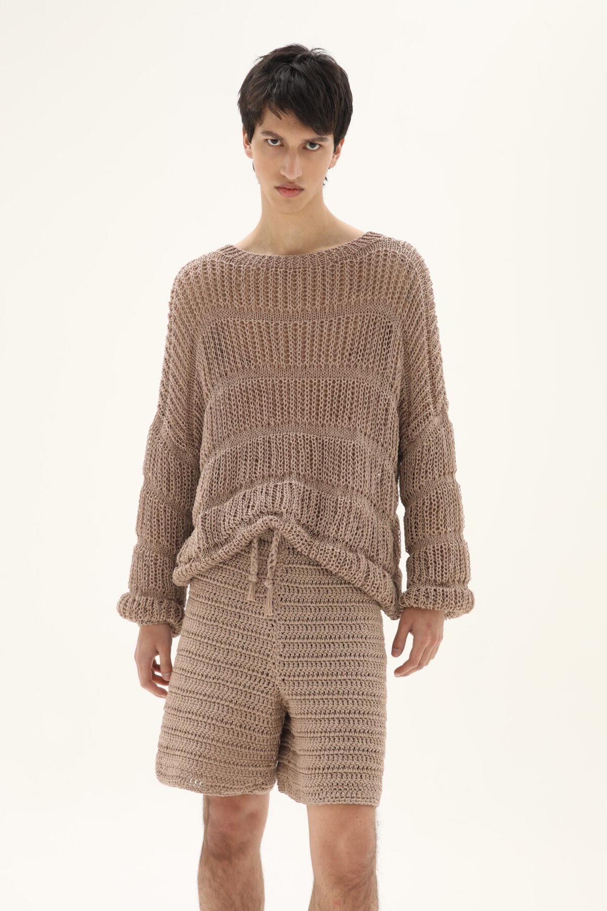 Fisherman’s rib stitch crewneck hand-knitted Sweater