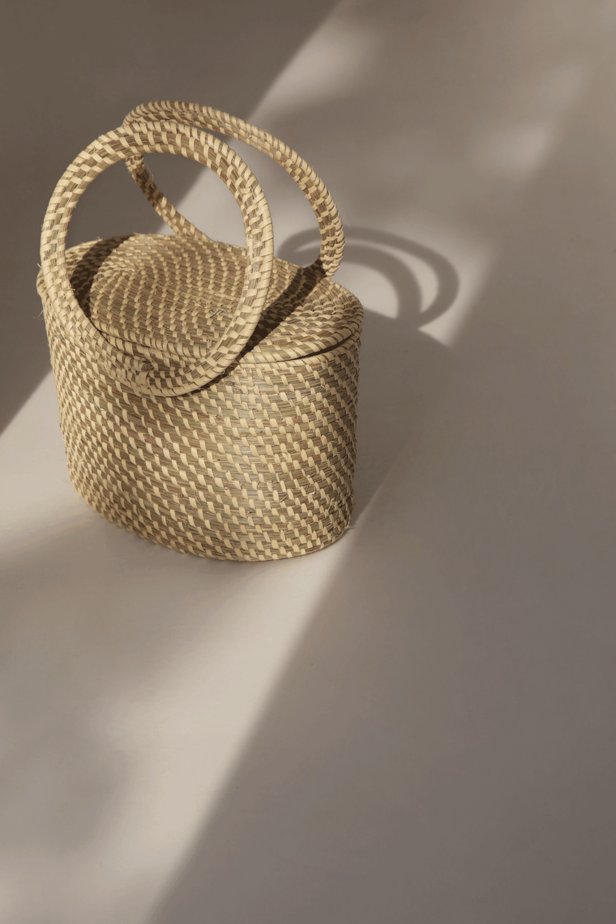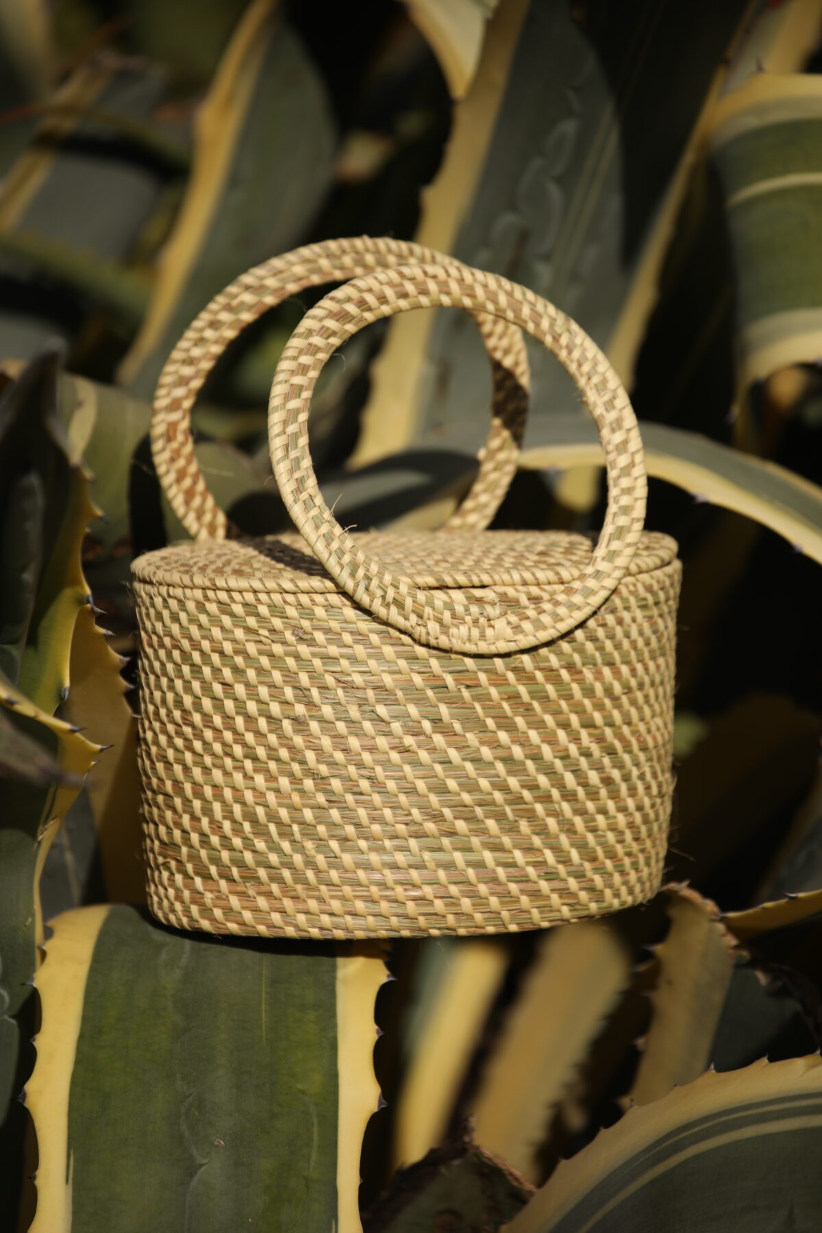 The Laguna Mini hand-bag circular handles hand-knitted in espartillo fiber from Esteros del Iberá