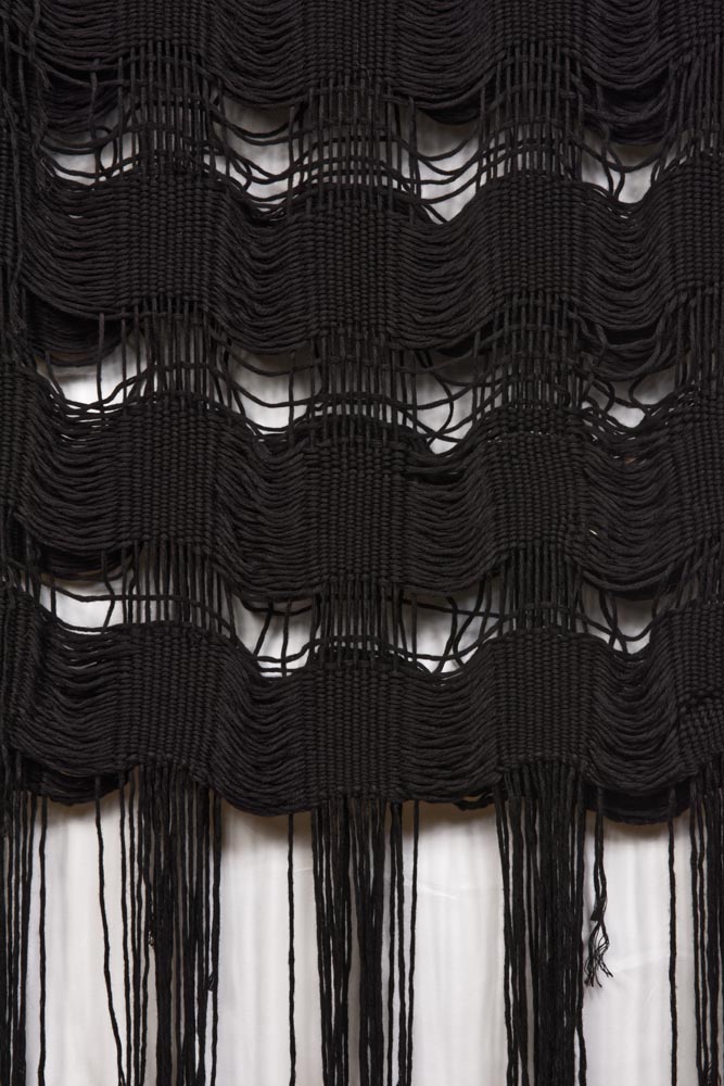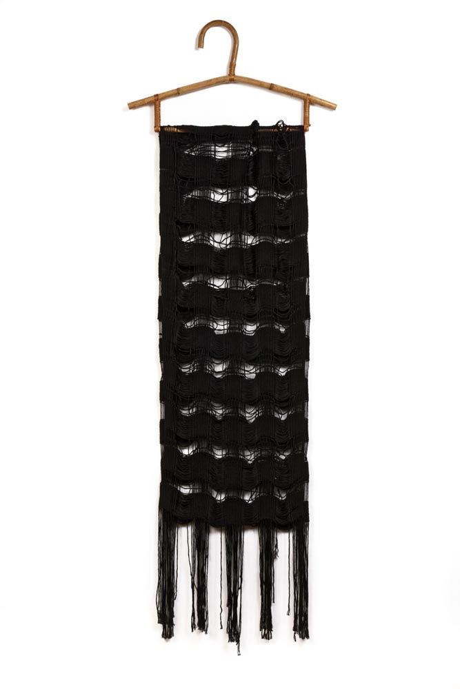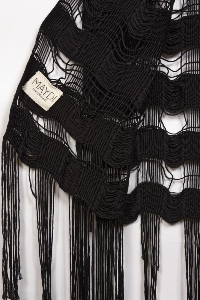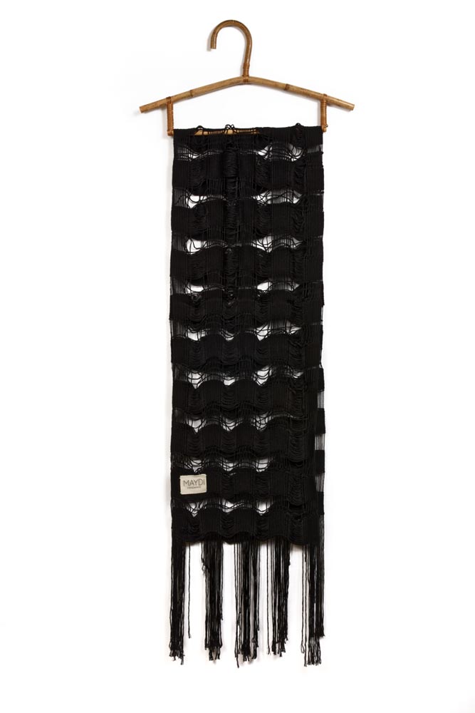 Loom-woven scarf long fringes from black bamboo fiber