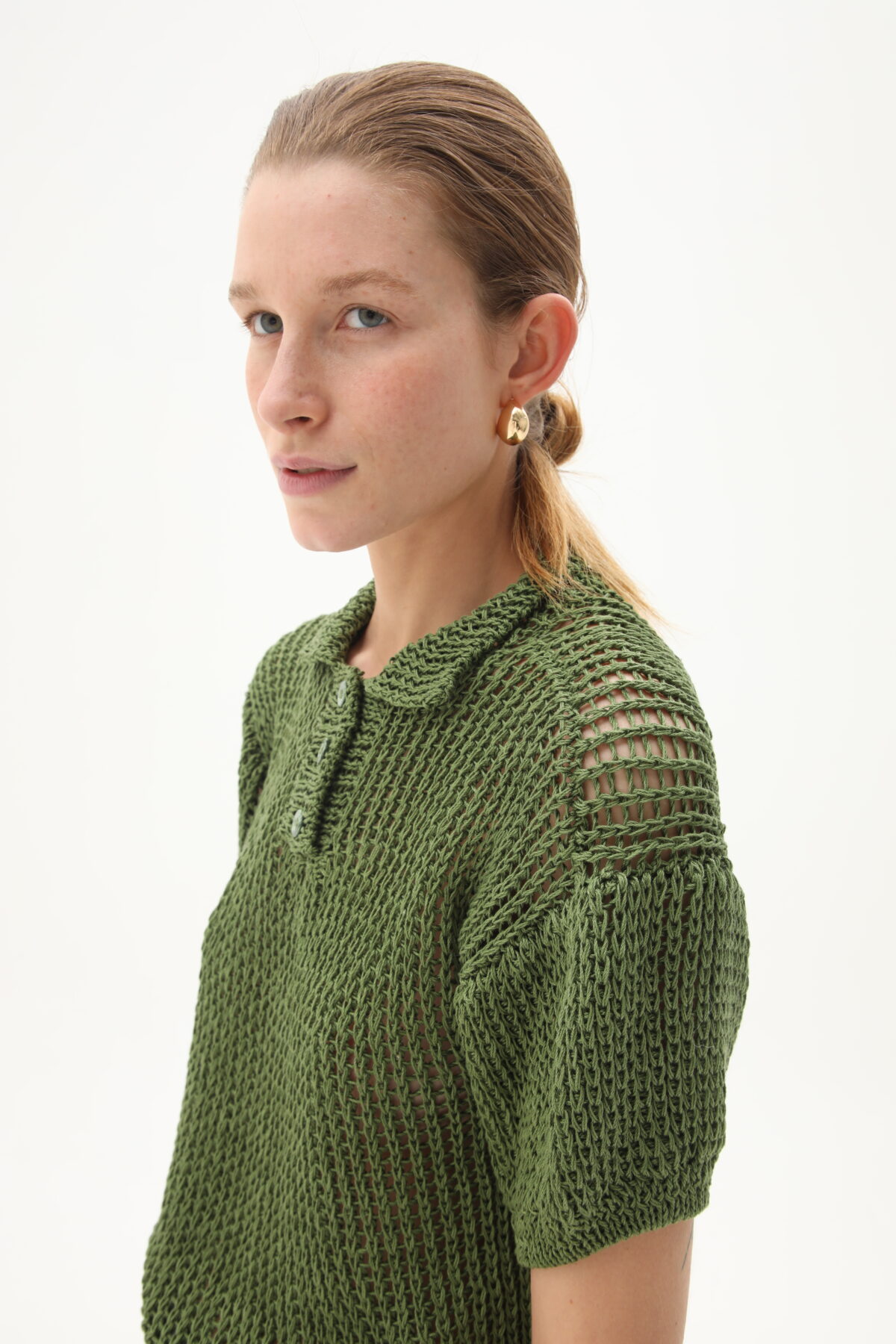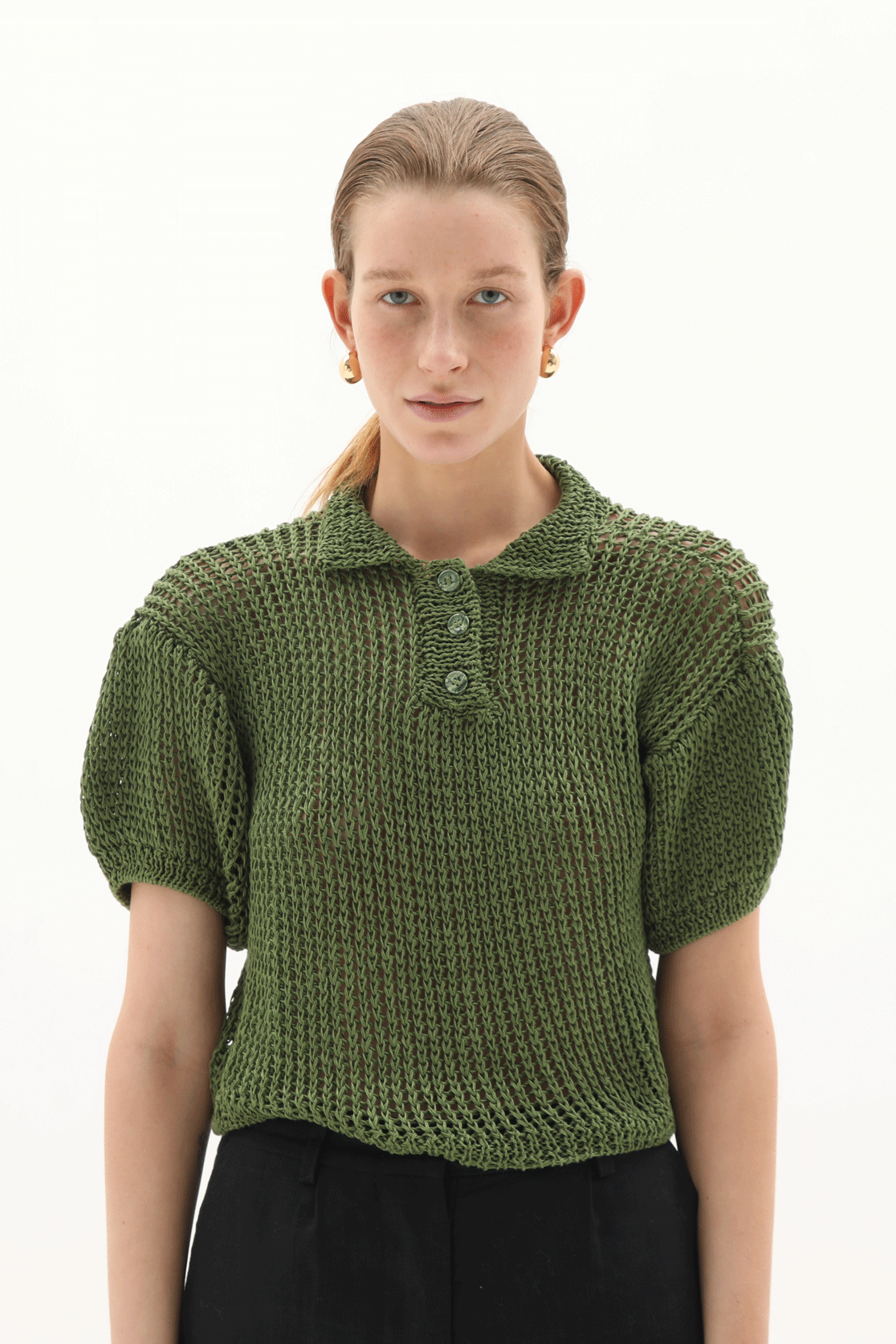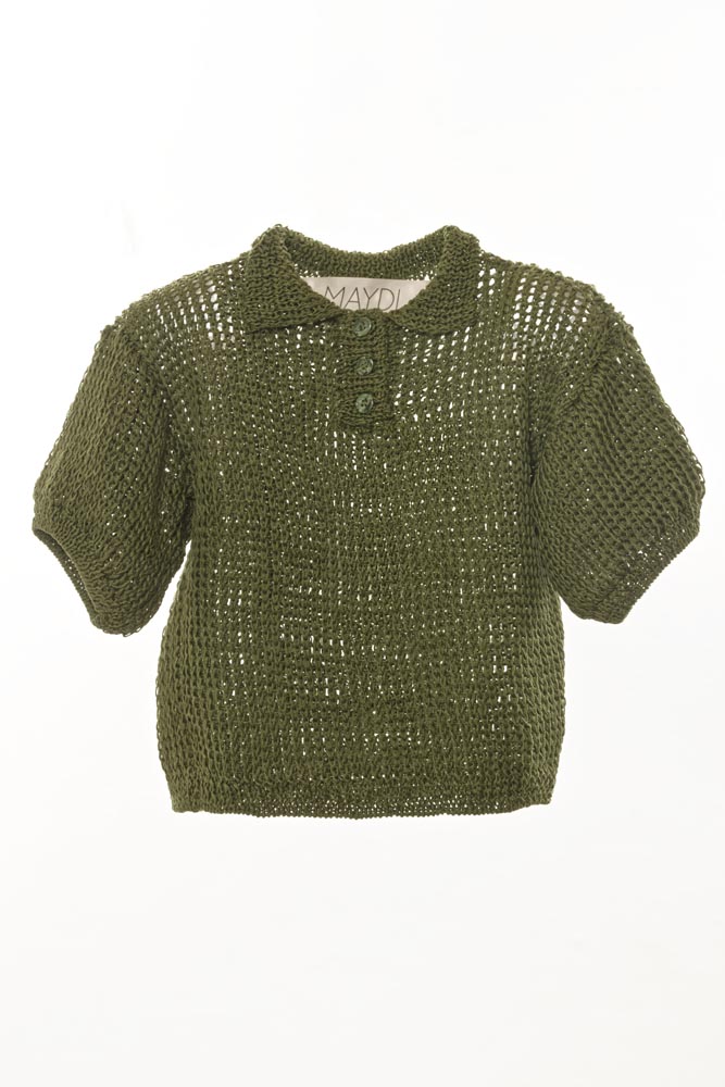 Slip stitch back loop hand-knitted short sleeves Polo