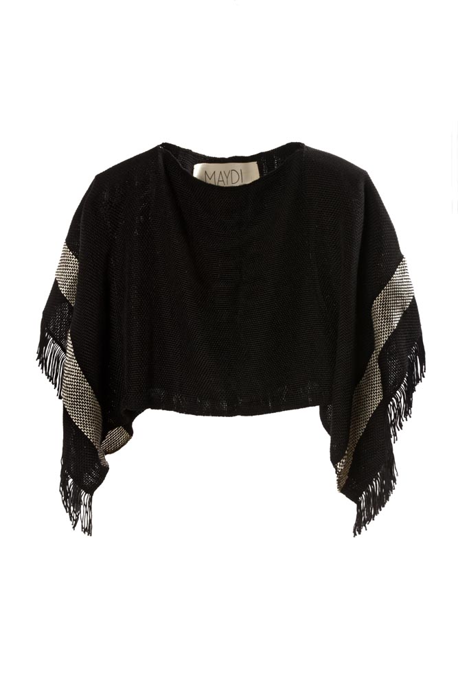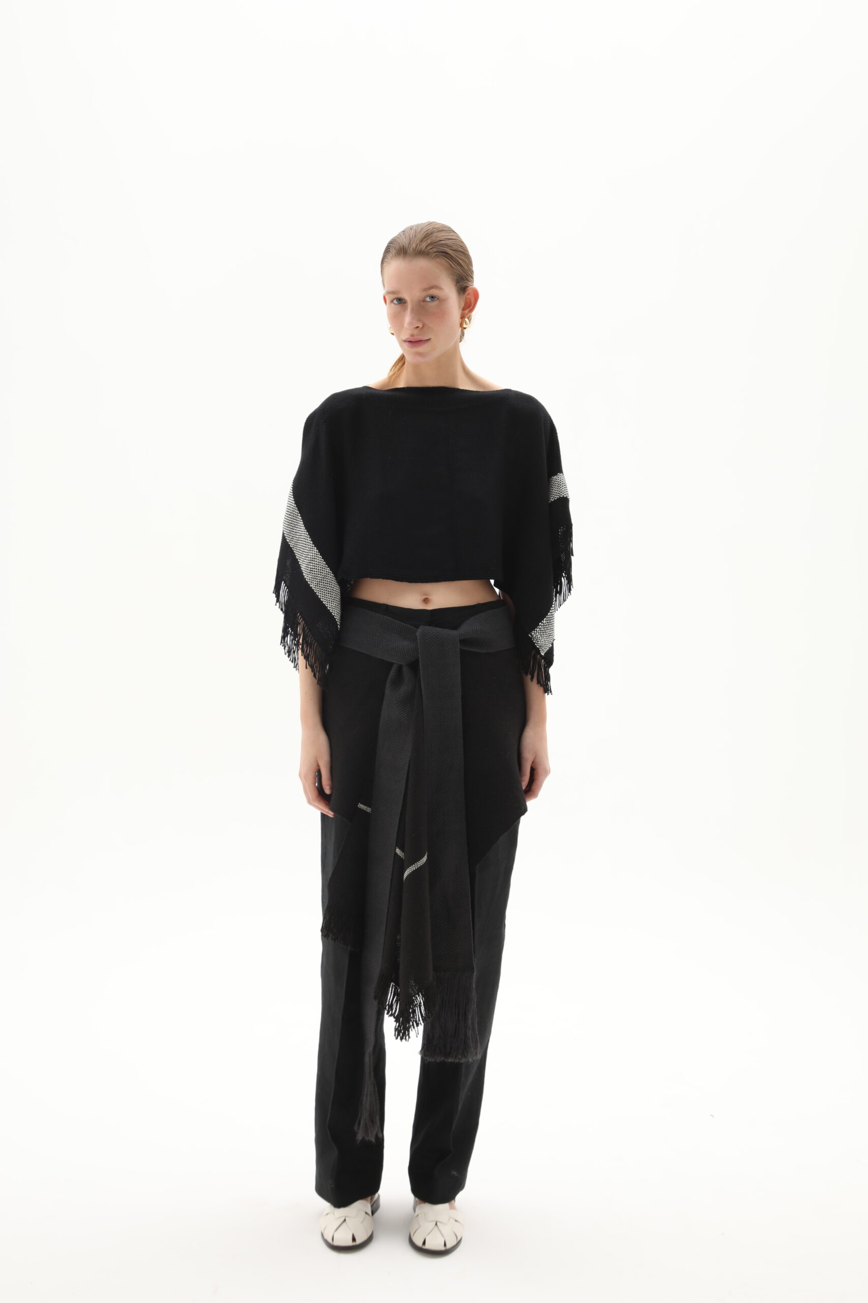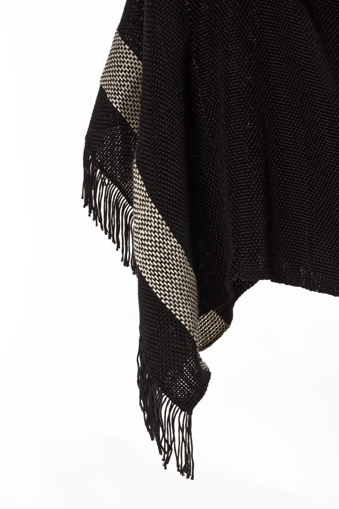 Loom-woven poncho from black bamboo fiber taffetan stitch with 240 threads