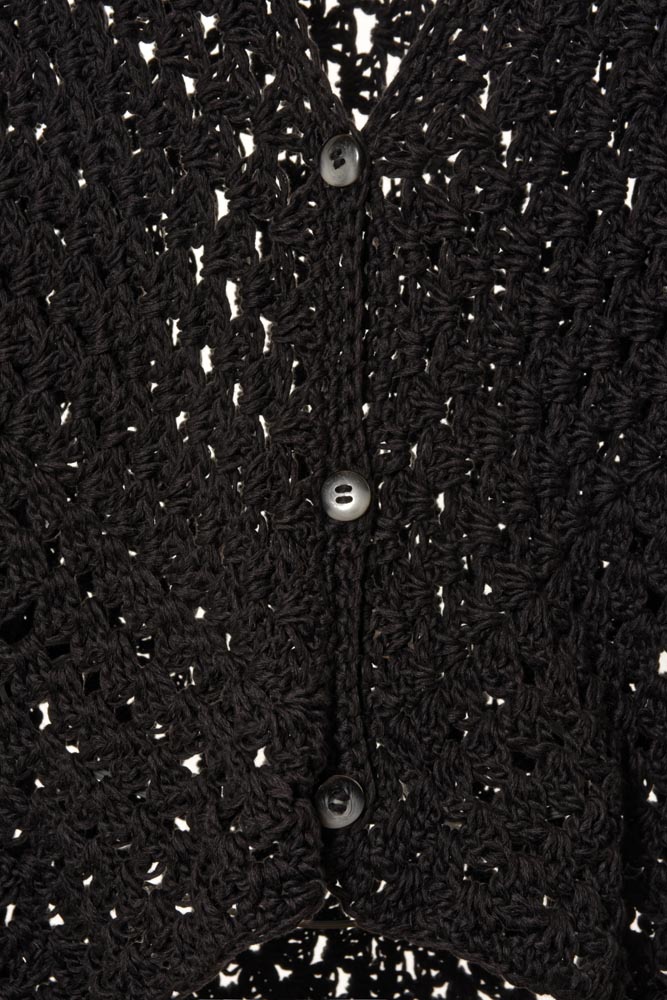 Simple net crochet stitch puffed sleeves Cardigan w/buttons